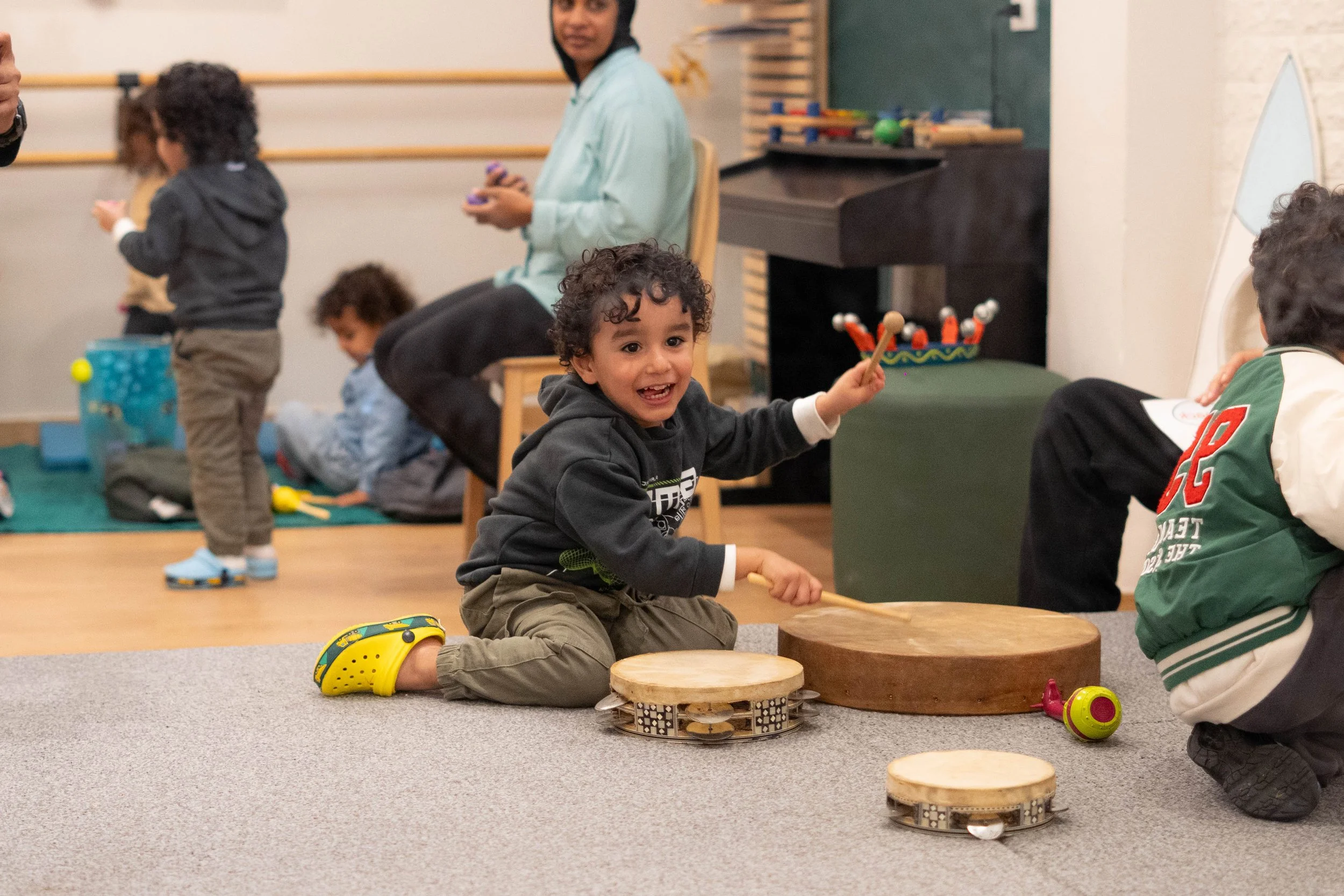Music and movement help children connect their minds and bodies. Through singing, rhythm, and dance, children develop coordination, listening skills, and emotional expression, while building confidence and a lifelong love for music and self-expression.